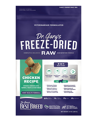 Premium protein from chicken, supports lean muscle growth & development. Nutritious chicken liver naturally supplies many critical vitamins and materials Green-lipped Mussel sustainably raised of the pristine shores of New Zealand and supply many health promoting nutrients. Salmon oil rich in the omega-3 fatty acids needed for skin and coat health. Wholesome vegetables provide very healthful sources for digestive tract health. Whole eggs have a complete amino acid profile and are a highly digestible protein source. Quinoa is a gluten-free superfood packed with protein, zinc, fiber and folate.