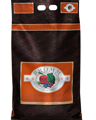 At Uncle Bill’s Pet Center, we not only offer Fromm cat food for sale, we also employ a highly trained staff that can assist you in finding an appropriate formula. Fromm Family Four-Star Nutritionals® Game Bird Recipe Cat Food is formulated to meet the nutritional levels established by the AAFCO Cat Food Nutrient Profiles for All Life Stages. A grain-free entrée of duck, turkey, quail, pheasant, and real Wisconsin cheese with an assortment of fresh fruits & vegetables. We will be glad to work with you to ensure that you feed your cat quality food for optimal health and happiness by providing the best selection and value on premium cat food for sale in Indiana.