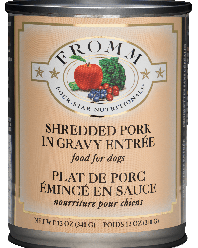 At Uncle Bill’s Pet Center, we not only offer Fromm dog food for sale, we also employ a highly trained staff that can assist you in finding an appropriate formula. Fromm Four Star Shredded Pork in Gravy Entrée is a generous portion of shredded pork cooked in pork broth with potatoes, carrots, and beans. We will be glad to work with you to ensure that you feed your dog quality food for optimal health and happiness by providing the best selection and value on premium dog food for sale in Indiana.