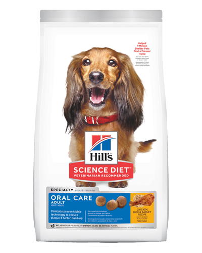 At Uncle Bill’s Pet Center, we not only offer Hill’s Science Diet dog food for sale, we also employ a highly trained staff that can assist you in finding an appropriate formula. Hill's® Science Diet® Oral Care dry dog food provides precisely balanced nutrition to improve dental health. Clinically proven technology reduces plaque & tartar build-up. Interlocking fiber technology cleans teeth to help freshen breath with every bite. Omega-6 fatty acids & Vitamin E for beautiful skin & coat. We will be glad to work with you to ensure that you feed your dog quality food for optimal health and happiness by providing the best selection and value on premium dog food for sale in Indiana.