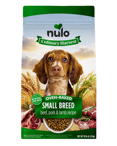 With 80% animal-based protein, tailored small-bite kibble, and a savory bone broth finish, Nulo Culinary Harvest™ is oven-baked to deliver big nutrition for small dogs. Our Small Breed Beef, Pork & Lamb recipe starts with real deboned beef, then layers in ancient grains, prebiotic fiber, and nourishing omegas to support lean muscles, gentle digestion, and all-day energy—tailored to meet the metabolic needs for small dogs. No fillers. No shortcuts. Just nutrition baked from the heart.