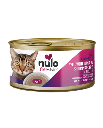 Nulo FreeStyle Cat & Kitten Yellowfin Tuna & Shrimp Pate is crafted with real seafood and other wholesome ingredients that provide cats and kittens with essential nutrients. The broth-based gravy helps keep your feline friend hydrated while the high protein content promotes satisfaction. The pate is finely blended into a soft, manageable texture and has a delectable taste. Made with protein-rich tuna and shrimp Wholesome ingredients provide essential nutrients to cats and kittens Finely blended for a smooth pate texture Single-serve portions have easy-open tops for convenient serving