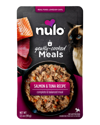 Home-cooking a balanced, nutritious meal for your cat can be tricky—Nulo’s Gently-Cooked Meals makes it easy to serve a homestyle experience without the mess or hassle. These nourishing recipes gently cook real salmon and tuna in premium salmon broth, paired with wholesome grains and salmon oil for a rich, flavorful texture even picky cats love. Carefully prepared with minimal processing to retain peak nutrients, each recipe delivers complete and balanced nutrition to help cats thrive. Simply open, serve, and let the purring begin.