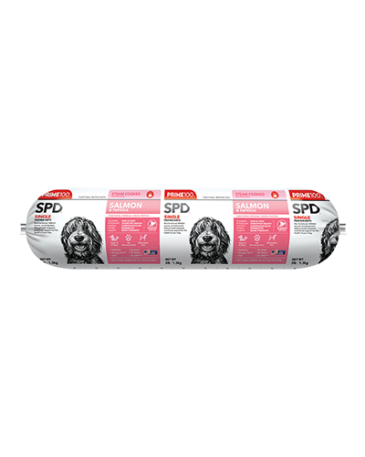 Prime100 Salmon & Tapioca is a novel, hypoallergenic, single protein diet designed for dogs with suspected food sensitivities, skin allergies or digestive issues. Complete and balanced for dogs of all ages, including giant breed puppies, with a natural source of essential fatty acids to assist with cognitive and cardiovascular health. With added natural digestive enzymes to help improve gastrointestinal health and added functional oils rich in EPA and DHA for optimum bone health, dermatitis, and animal wellbeing. Bamboo fibre acts as a functional prebiotic for digestion. No added artificial colours, flavours, or preservatives. These functional protein, select ingredient diets are made in small batches and packed raw in their final packaging, then gently steam cooked and allowed to rest for up to 24 hours. Serve straight from your fridge! We will be glad to work with you to ensure that you feed your dog quality food for optimal health and happiness by providing the best selection and value on premium dog food for sale in Indiana.
